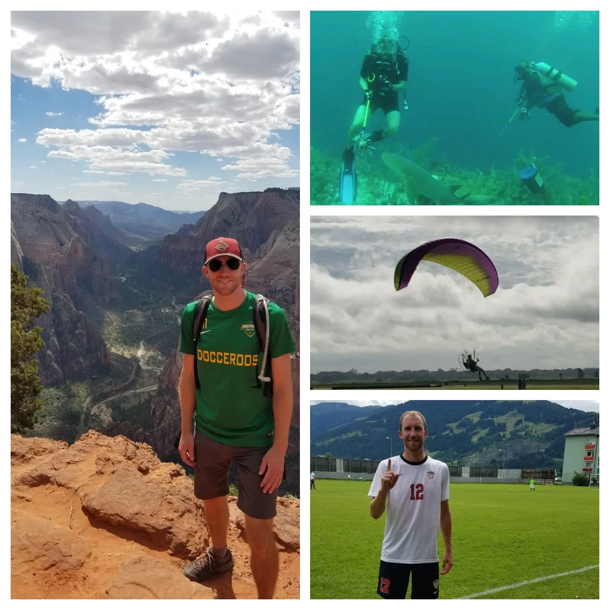 Hobbies: Travel, hiking, soccer, snowboarding, board games, video games, reading. I randomly decided to take a paramotoring training course and I have my advanced open water scuba diving certification. I've done a coral reef conservation program including spearfishing lionfish in Belize. I also played on the US Medical Soccer Team playing tournaments in Leogang (Austria), Prague (Czech Republic), and Cancun (Mexico) against roughly 20 other countries.